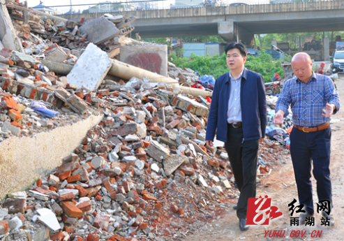 红网雨湖站4月28日讯(分站记者 谢岳峰)三桥东片区项目作为湘潭市委、市政府强力推进的项目之一,其征地拆迁工作一直受到雨湖区委、区政府的高度重视。4月20日,湘潭市雨湖区委副书记、区长何锋来到该项目调研时,对三栋仍未腾房倒地的房屋明确了时间节点任务。一周时间过去了,征拆工作推进如何?27日,何锋再次来到三桥东片区项目现场,督查腾房倒地情况。当天上午,万楼街道已联合多部门对项目内的两栋房屋进行强制腾房倒地作业。下午,何锋来到项目征拆现场,实地督查腾房倒地进展情况,听取了相关负责人有关方面的情况介绍,并看望了奋战在征拆一线的工作人员。在剩余的一栋未腾房倒地房屋处,工作人员以及专业施工人员正在进行腾房,工作人员告诉何锋,在将户主家具等物件全部进行搬离后立即进行房屋拆除作业,何锋嘱咐大家,在加快腾房倒地作业的同时,也要注意施工期间自身安全。