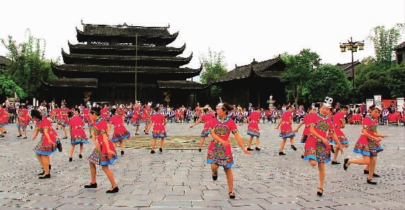 时刻新闻 —分享— 4月29日,湘西龙山县里耶古城,里耶小学的师生在表演土家摆手舞。当日,该校师生来到绿园休闲广场,与古城居民载歌载舞,喜迎“五一”劳动节。 俞采华 胡荣春 摄影报道 来源:三湘都市报 作者:俞采华 胡荣春 编辑:胡芳