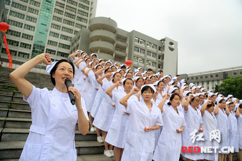 “提灯女神”带领着白衣天使们进入会场 陈涛 摄