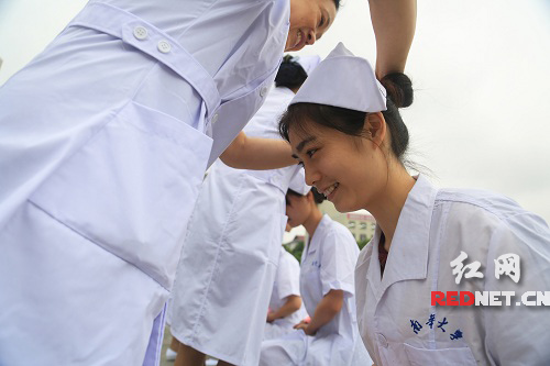 红网衡阳5月8日讯(通讯员 陈雪池 李谌涵)“终身纯洁,忠贞职守。勿为有损之事,勿取服或故用有害之药……”当南丁格尔誓言又在耳边响起,一群白衣天使们出现在南华大学的南华广场上。5月8日上午,在“5·12”国际护士节到来前夕,南华大学护理学院举办了毕业生护士授帽仪式暨首届急救技能大赛,共同迎接节日的到来。“护士是连接医生与病人的桥梁,一身白大褂,一顶燕尾帽,就是我心中最完美的形象。”护理学院学生温梦圆说。现场南华大学护理学院段功香教授手提油灯,仿若“提灯女神”南丁格尔,带领着白衣天使们进入会场,每位护士手持燃烧的蜡烛,象征着“燃烧自己,照亮他人”,由护士前辈为其授帽。授帽仪式结束后,他们进行了神圣而庄严的宣誓,声音嘹亮,回荡在整个广场上。他们将履行救死扶伤、防病治病的人道主义护士天职,为预防疾病、保护生命、减轻痛苦和促进人类健康事业奉献青春与热血。
