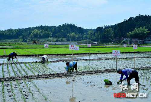 红网隆回5月10日讯(通讯员 贺上升)5月10日,湖南省隆回县羊古坳镇不同超级杂交稻品种试验田正在抢插中稻。今年,羊古坳镇农业综合服务站为农业科研部门承担“Y两优900”“超优1000”等50多个超级杂交稻品种高产生态栽培试验,为探索超级杂交稻高产采集理论和技术依据。