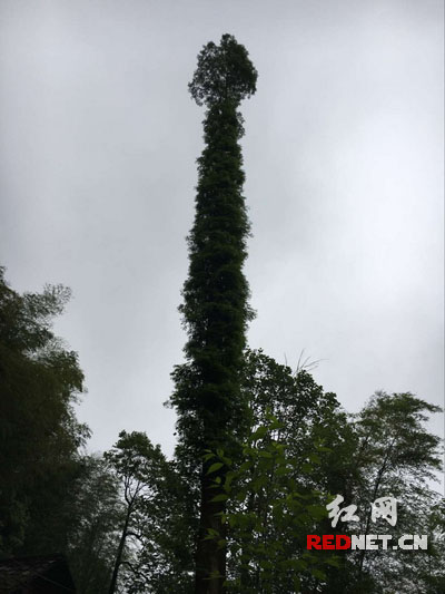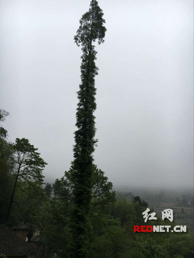 红网隆回5月10日讯(通讯员 杨贵新)5月9日,笔者在湖南省隆回县高平镇上平村发现一棵罕见的水杉树,该树地径达1.4米,树高达50余米,主干通直,如挚天一柱,直穿云霄。据村民们介绍,这棵树栽于上世纪八十年代初期,由于土壤肥沃,阳光充足,长势非常好。前些年,由于树的枝叶影响到了周围房屋采光,被劈掉了枝叶,于是成了现在的形状。