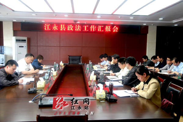 会上,江永县委常委、政法委书记刘建能作了政法工作专题汇报。听取汇报后,市委常委、政法委书记唐能武充分肯定了近年来江永政法工作所取得的成绩。他指出,近年来江永变化大、变化快、变化好。每到一处,无论是法院机关,还是基层派出所、村警务室,都是越看越高兴,越听越兴奋,江永真正走出了一条既符合上级精神,又切合江永实际的政法工作新路子。全县干部队伍精神面貌好,政法工作亮点纷呈,特别是“一村一警、三员联村”、综治民调、“4+X”社区警务、“互联网+社会治理”等工作做到了人员到位、责任到位、机制到位、措施到位,特色明显,成效突出,经验值得全市推广。公安局的公正执法,检察院的公正诉讼,法院的公正审判,司法局的公正司法和政法委的执法监督等,树立了全县政法机关的良好形象,为维护社会大局稳定、促进社会公平正义、保障人民安居乐业、建设美丽和谐江永作出了突出贡献。