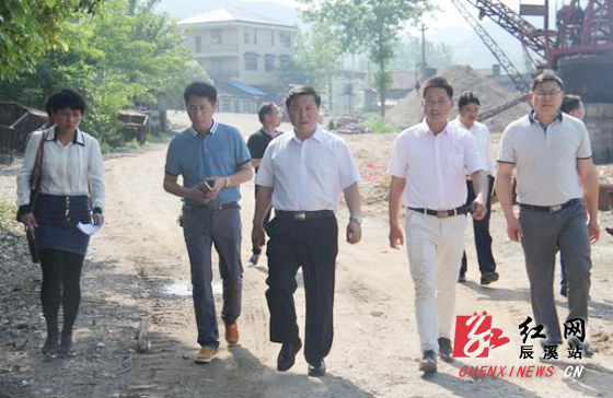 湖南省辰溪县委副书记、县长周详一行在大桥村查看村容村貌
