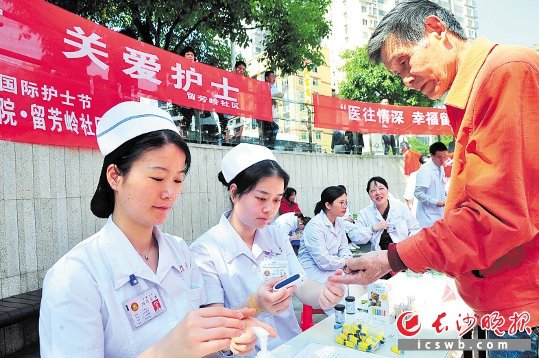 昨日是“5·12”国际护士节,开福区湘雅路街道留芳岭社区联合湘雅医院,开展“医往情深 幸福留芳”大型义诊活动,湘雅医院的医生、护士来到留芳岭社区为居民义诊。当日,湖南省儿童医院260余名护理工作者来到橘子洲公园开展“红五月、天使行”拓展活动,以演练与游戏相结合的方式,提升护士的实战技能。连日来,湖南省人民医院、湖南省肿瘤医院、湖南中医药大学第一附属医院等多家医院组织各种活动纪念护士节。 长沙晚报记者 贺文兵 唐江澎 通讯员 李旭 摄影报道