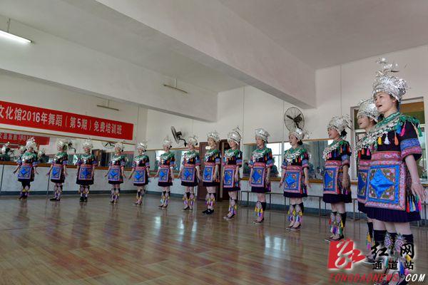 红网通道站5月17日讯(通讯员 张红 向华)5月16日,湖南省通道县15名侗族阿妹正在县文化馆排练侗族大歌,备战20日在北京人民大会堂召开的G20国际旅游部长会议。副县长蔡迪文到场指导排练工作。侗族大歌有近千年的历史,是侗族的一种多声部、无指挥、无伴奏、自然合声的民间合唱形式,是通道县省级非物质文化遗产名目,是非物质文化遗产中的“活化石”。