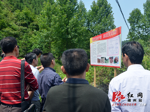 与会人员在坳上镇九龙村观摩产业扶贫基地。