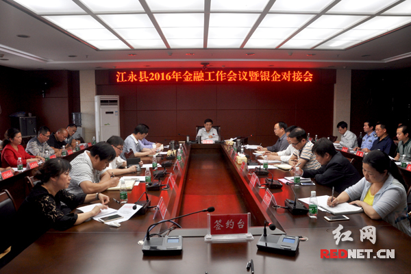 江永县委常委、常务副县长杨健在会上通报了2015年金融考核情况和2016年考核奖励办法。江永县科技商务粮食和经信委负责人介绍了全县中小企业融资需求情况,各金融机构负责人汇报了工作情况,并提出了很好的意见和建议。会上还举行了银企签约仪式。