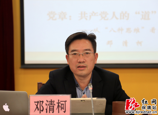 本次学习邀请了湖南省委讲师团副主任邓清柯授课,他以《党章:共产党人的“道”与“法”——从“八种思维”看党章》为题,从党章是全面从严治党的“总遵循”、党章演变史是中共党史的“浓缩版”、党章是党内的“根本大法”、党章是党的纲领和章程的“集合体”、党章规定的民主集中制是党的“生命线”、党章中的纪律是党的全部纪律的“母体”、党章是党员加强党性修养的“教科书”、学习党章是全体党员的“基本功”等八个方面,以战略、历史、法治、系统、组织、底线、团队、学习的思维看党章,多角度、深层次、全方位地解析了党章。