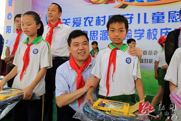 龙山县委常委、副县长王京海与思源学校留守学生合影