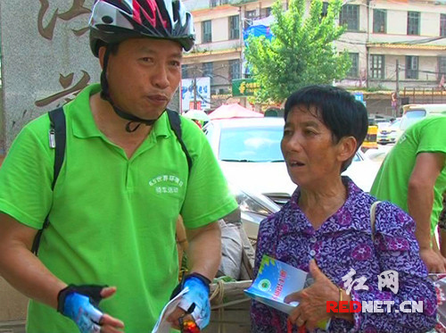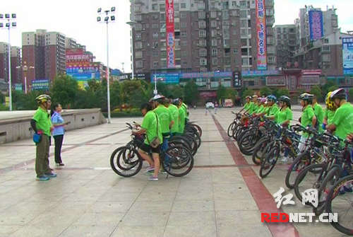 红网蓝山6月3日讯(通讯员 赵彬)6月5日是世界环境日。6月2日,由湖南省蓝山县环境保护局、县环保志愿者协会、湘骑自行车俱乐部的30余名环保志愿者,骑着自行车穿行在蓝山县的大街小巷,向市民宣传绿色环保理念。