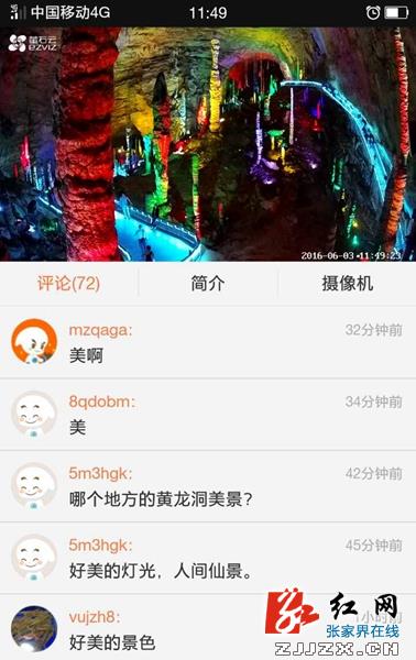 红网张家界站6月4日讯(通讯员 邓道理)“哇!好漂亮的地方。”6月3日,一位云南微友通过手机微信看到湖南张家界黄龙洞景区新上线的龙宫现场直播美景后,自发留言称赞。黄龙洞是张家界首家开通微信直播的旅游景区,也是全国目前唯一开通微信直播的旅游溶洞。