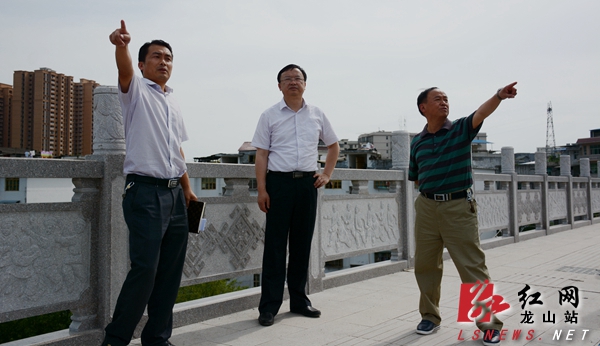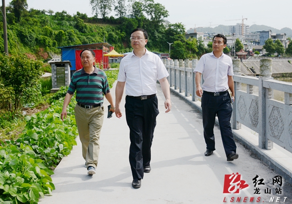 红网龙山站6月7日讯(分站记者 彭晓东)6月6日,湖南省湘西州委常委、湘西州委宣传部部长、龙山县委书记周云在龙山县委常委、县委办主任符家波的陪同下,深入皇仓坪公园、果利河沿河风光带及湘鄂情大桥等地,就城区群众休闲健身场所建设现场调研。周云强调,要转变思想观念,合理利用资源,在不影响河堤工程质量的同时,结合绿色龙山建设和城市景观建设,把果利河、酉水河沿河两岸建设成群众休闲健身场所,提高城市品位。周云一行从皇仓坪公园,沿果利河长沙大桥旁的滨河公园、南门二桥、果利河大桥、东门桥一带河堤进行实地察看。到龙山县粮库外中丘坝工地,周云还特意察看了施工情况,并与工程指挥部负责人及技术人员进行了亲切交谈。
