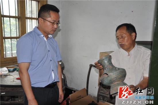 桑植县委副书记、县长赵云海(左)调研全县文化工作