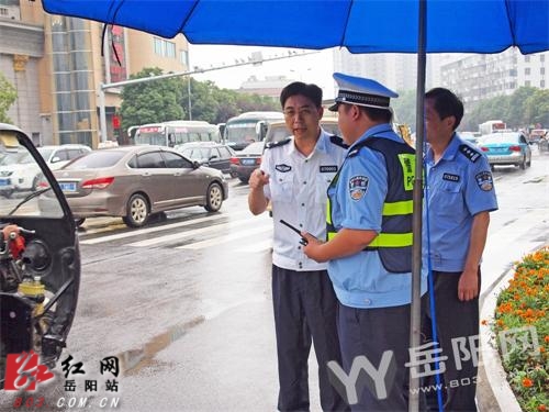 红网岳阳站6月12日讯(分站记者 陈丽虹 通讯员 潘胜亮)6月11日下午,湖南省岳阳市副市长、市公安局长唐文发冒雨检查城区多个繁华路段的交通秩序情况,并参与交通指挥。冒着大雨,唐文发轻车简从,在花板桥路口、市一中学考考场、岳阳高铁站,查看了假期值班安排情况,现场督查假期交通安保工作,并对冒雨执勤的民警表示慰问。今年端午小长假正值高考后,出城返程车流多,同时6月11日至13日为普通高中学业水平考试时间,为确保道路环境安全畅通,市交警支队作了特别的部署,强化道路安全工作。唐文发对此给予肯定。
