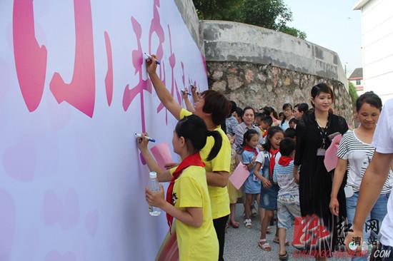 学生及家长在创国卫宣传墙上签名