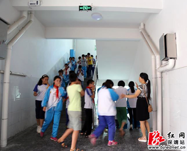 老师站在楼道指引学生安全撤离
