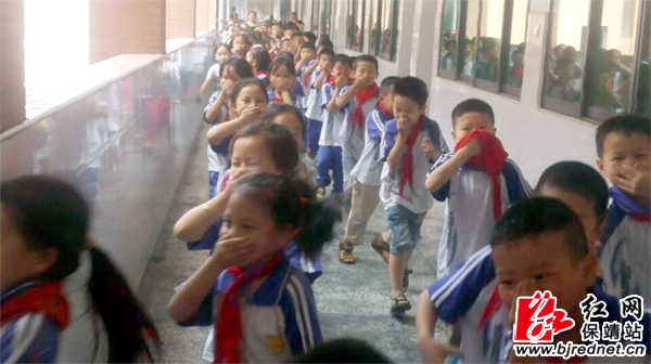 班主任指挥学生捂嘴迅速撤离教室