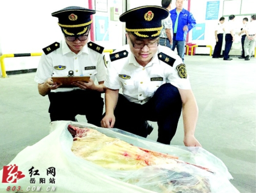 红网岳阳站6月17日讯(分站记者 谢凌)6月16日,一批来自南美洲的20吨冻带骨牛肉,经湖南岳阳出入境检验检疫局现场检验检疫合格后,批准入境。这是城陵矶肉类指定口岸运行以来首次进口牛肉,也是湖南地区进口的首批牛肉。今年以来,城陵矶口岸已进口各种肉类1100吨,达到了96个标箱,主要以猪肉为主。为加大进口肉类口岸的平台检验,岳阳出入境检验检疫局和岳阳海关采取联检方式,通过“三个一”,即“一次申报、一次查验、一次放行”的便捷措施,货物最长在三个工作日内可放行出港,降低了企业的物流成本,节约了资金周转率。