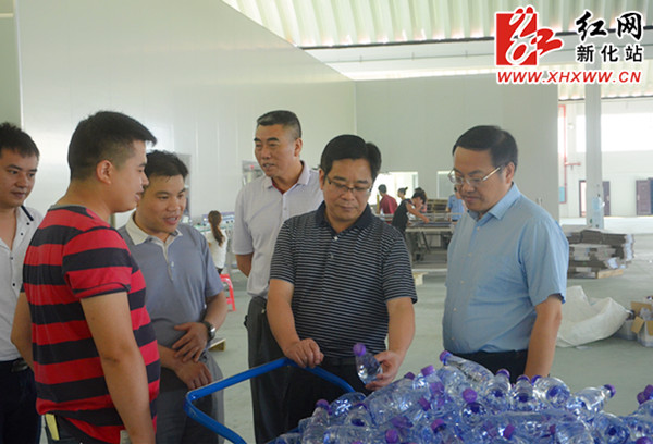 在达润饮料公司生产车间,胡忠威向公司负责人详细了解了生产经营情况。得知瓶装矿泉水开始试生产后,胡忠威随手拿起一瓶品尝起来。他指出,达润作为新化本地的新兴品牌,一定要加强管理,科学研发,确保质量,以自己独特的优势,让品牌走向全国。