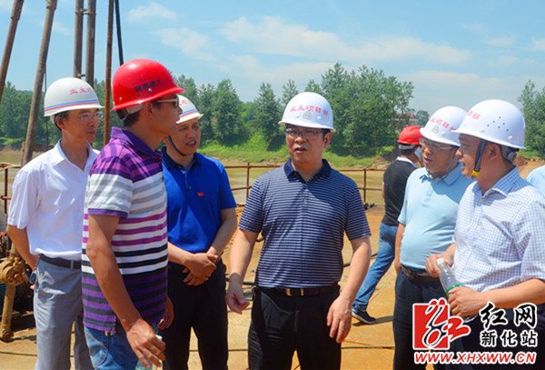 红网新化站6月19日讯(分站记者 邹畅宁)6月17日,湖南新化县委书记胡忠威先后来到达润饮料公司、新化一中、娄底大道新化段、白沙洲西路改扩建、河西沿河公路等重点项目建设现场,检查指导项目建设,强调保障施工安全、优化施工环境、狠抓施工质量、提高施工进度。县领导杨韶红、王文红、张陆林、曾令斌、杨慧诚及各相关单位负责人陪同视察。