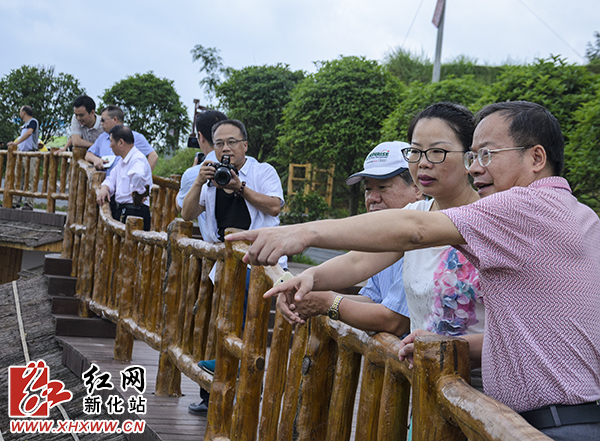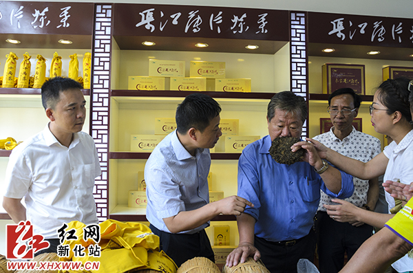 新化县副县长李南新(左二)陪同台湾交流团在渠江薄片考察