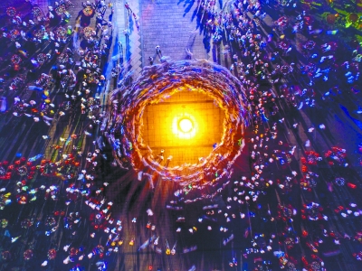 6月20日晚,游客在篝火晚会上载歌载舞。当天,“瑶王宴”在新宁县崀山风景名胜区北大门游客中心举行,吸引了1000余名游客前来参加。位于湘西南边陲的新宁县是多民族聚集地,其中瑶家人的饮食、起居、丧葬等习俗颇具特色。崀山景区专门推出了富有民族特色的旅游项目——“瑶王宴”,受到广大游客的喜爱。