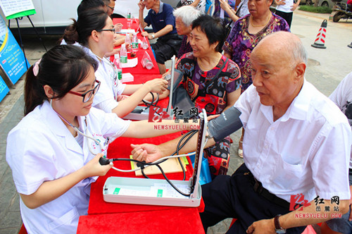街道社区卫生服务中心的医生为现场居民提供义诊服务。