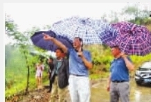 张家界市国土资源局党组书记、局长周远莽冒雨踏勘滑坡现场,紧急处置滑坡隐患。