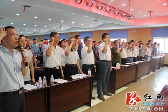 大会在庄严的《国歌》声中拉开序幕,全体与会人员举起右手,重温了入党誓词。