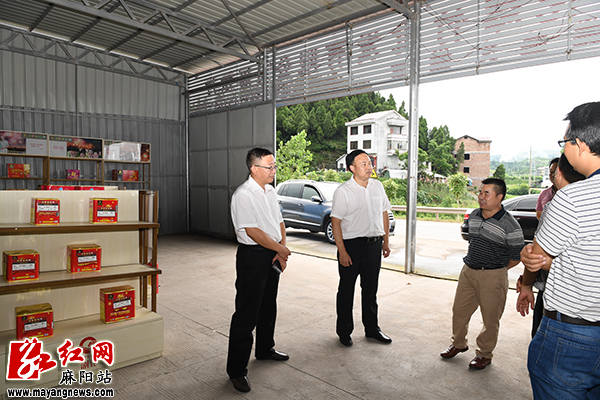 湖南省麻阳县委书记李卫林(左二)一行在祥和烟花爆竹批发公司调研