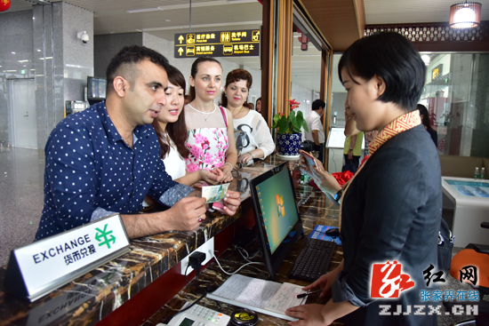 外籍游客在兑换货币