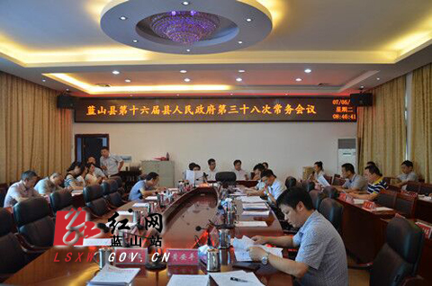会议听取了旅游工作的情况汇报、关于生态红线的划定情况汇报、关于龙泉路建设实施方案的情况汇报、关于烟花爆竹整体退出工作的实施方案、关于尽快退还县汽车队集资本息有关事项的情况汇报、关于国土工作的情况汇报;审议并原则通过了关于蓝山县2016年美丽乡村旅游建设实施方案、关于蓝山县乡村教师支持计划(2016-2020年)实施细则、关于蓝山县城市防洪工程建设和中小河流治理城市防洪工程暨左岸市政工程移交方案、关于公共资源交易中心“三定”方案、关于全国爱卫工作、关于蓝山县城镇生活垃圾收运处理工程实施方案。