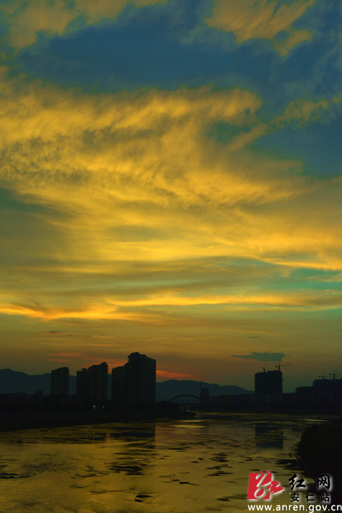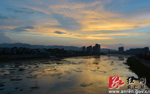 红网安仁站7月9日讯(通讯员 何炳文 何超)长达13公里的安仁县永乐江风光带按照春、夏、秋、冬四季特色理念进行建设,集护堤、防洪、绿化、休闲于一体,其山水田园生态风光已成为湖南安仁一道风景线。7月7日傍晚,永乐江风光带披上了鲜红的晚霞,伴着习习晚风,与江水相融,与灯光相映,天上霞光吐彩,水中流光溢彩。给散步休闲的市民送来了大自然的美丽享受。