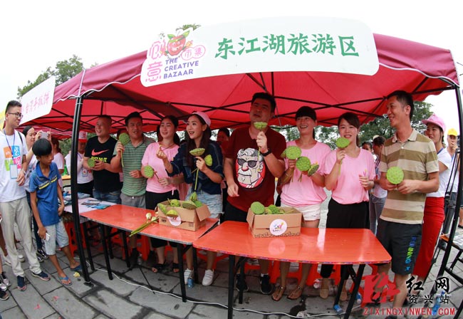 从早到晚,在游客集散广场和三元村,创意集市也热闹非凡。各种手工艺品、旅游产品、本地农产品等,吸引了大批的游客驻足购买。YOYO也现身创意集市,和她的小伙伴们摆摊卖起了流华湾的莲蓬,积极推介资兴旅游产品。这一整天,吆喝声、欢笑声……久久回荡在流华湾。