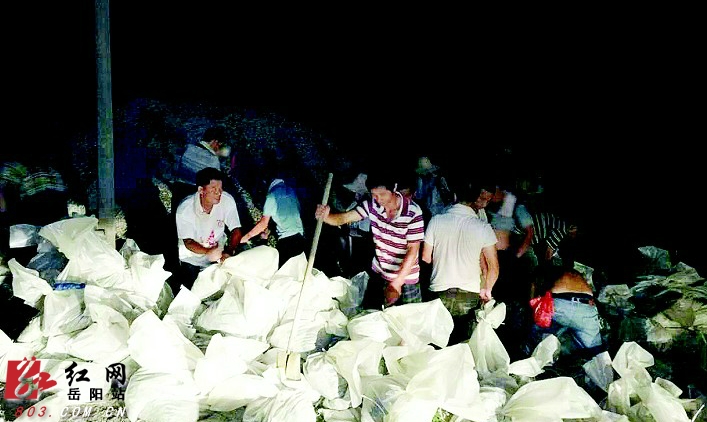 截至10日晚12点,通过10多个小时紧急抢修,君山区现已抢建起一条长3.5千米,高约6米的彩条布加固带。同时,该区还组织了90台运输车、35台大型机械、4条船舶,随时待命。