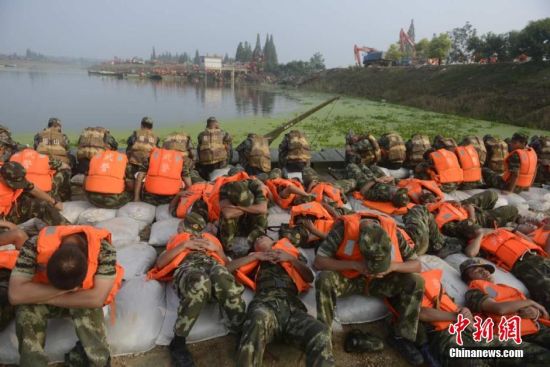 7月12日8时,湖南华容县新华垸溃口合龙仍在紧张进行中。经过一夜的奋战,合龙工作进入最后关键时刻。