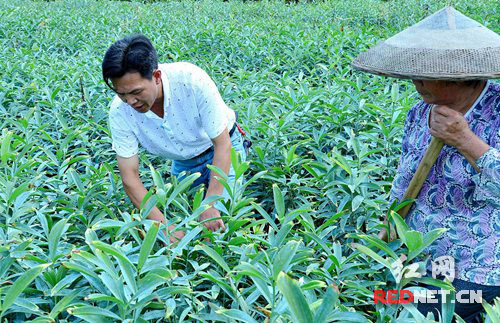 红网隆回7月12日讯(通讯员 贺上升)7月12日,湖南省隆回县司门前镇石杨桥村党支部书记阳乐威在地里查看百合生长情况。今年,该镇通过土地流转引进外地客商,种植了200亩龙牙百合。