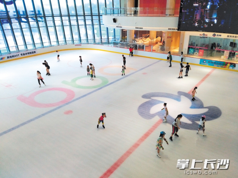 各种运动项目成为长沙商业情景化的新元素,在炎夏长沙的购物中心竟然可以滑雪、溜真冰。图为步步高梅溪新天地的真冰场吸引了不少市民。长沙晚报记者 刘捷萍 摄