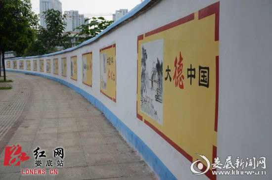 红网娄底站7月13日讯(分站记者 刘婷)7月11日,“传播文明,画美娄底”——湖南省娄底城区建筑围墙大型公益彩绘活动正式启动,将在城区部分建筑工地围墙,统一绘制中央文明办颁布的“图说我们的价值观”公益广告。市委常委、宣传部长伍美华宣布活动启动,并参观彩绘墙。