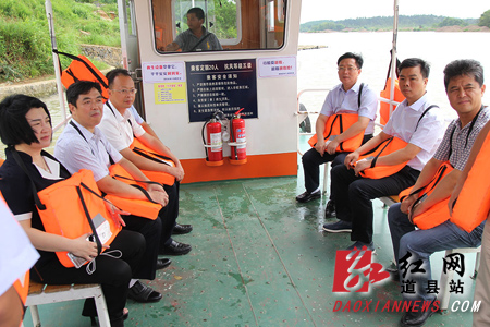 吴志雄一行首先督查了道县祥霖铺镇两河口村的码头渡口,他穿上救生衣,登上渡船,沿河道进行安全巡视后,要求渡船工作人员要加强安全意识,持证上岗,规范操作,确保过往群众生命财产安全。