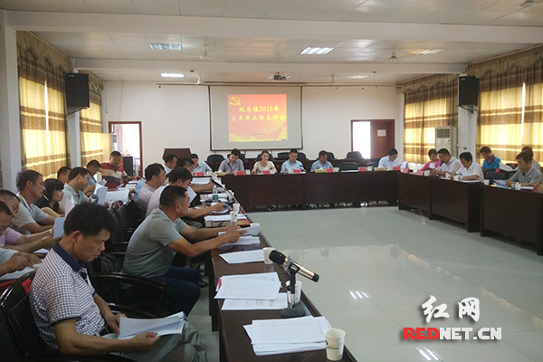 14日下午,长沙市雨花区跳马镇召开2016年度上半年工作点评会。