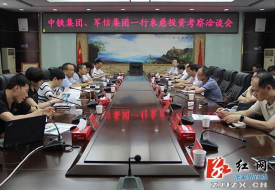 红网张家界站7月15日讯(分站记者 李弘扬) 7月14日,由中铁中南投资发展有限公司党委书记陈哲、湖南军信环保集团有限公司董事长戴道国带队的考察团来到慈利县,就项目投资相关事宜进行洽谈。县委书记邱初开,县委副书记朱法栋,县委常委、副县长潘远忠参加洽谈会。