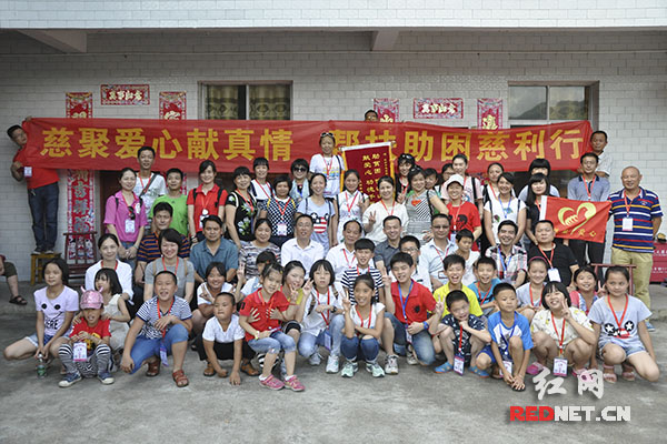 7月16日,长沙市慈聚爱心助困发展中心的100多名志愿者来到慈利县扶贫助困。图为部分志愿者与慈利县扶贫工作有关负责人合影。