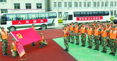 时刻新闻 —分享— 7月15日,益阳市资阳区沙头镇,驻守抗洪的武警娄底支队39名共产党员重温入党誓词,激发参战官兵的抗洪斗志和工作热情。官兵们纷纷表示,不忘初心,为民服务。陈水扬 摄 来源:湖南日报 作者:陈水扬 编辑:康晓乔