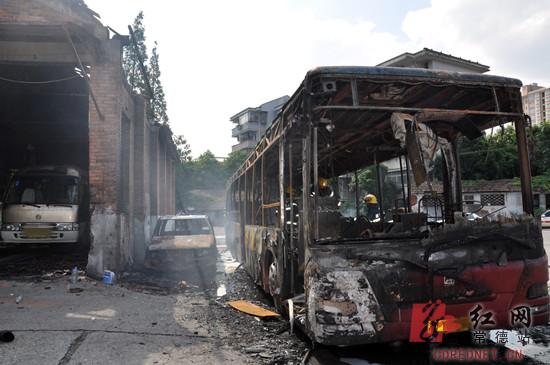 “睡觉时听到一声巨响,还以为谁家吵架摔东西,往楼下一看,好大的火!”市民小琳家住维修厂附近,亲眼目睹了火灾现场。“火很猛,浓烟滚滚。”15点多,记者赶到现场,看到消防队员已经在进行扫尾工作,公交车及旁边的一辆皮卡车已烧成空壳,维修间的顶部被烧穿,屋下一辆中巴车右侧车身受损。