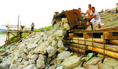 时刻新闻 —分享— 7月21日,里耶古城防洪大堤,人们运送石料加固大堤受损地段。里耶古城“6·20”特大洪灾,造成防洪大堤多处受损。连日来,龙山县组织人员昼夜施工,整修防洪大堤。 胡荣春 摄 来源:湖南日报 作者:胡荣春 编辑:刘飞越 实习编辑 黄倩