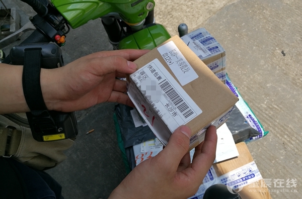 21岁的郑斌是一位常德小伙,今年刚来长沙,加入了快递员队伍成为了这个大家庭的一员。中午12点半,太阳火辣辣的炙烤大地,室外温度达到40度,满头大汗的他仍奔波于各条大街小巷,挨个地址送件上门。“上午的还有10个件没送完,我得把它们全部送完才能去吃饭,下午有新的包裹要送。”