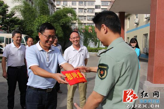 红网慈利站7月30日讯(分站记者 吴娟)7月29日,“八一”建军节前夕,湖南省慈利县委书记邱初开,县委副书记朱法栋,县人大常委会主任赵群策,县政协主席吴淑元,县委常委、常务副县长舒洪波,县委常委、县人武部部长潘志明县五大家领导来到县人武部、武警中队、武警消防大队、驻慈海军部队,看望慰问武警战士和驻地部队官兵,向他们致以诚挚地问候和节日的祝福,并为他们送去慰问金。