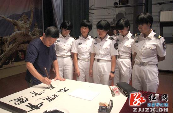 “人民子弟兵为祖国的安全及百姓的安居乐业付出了很多努力,作为艺术家,有机会用手中的毛笔为他们献上自己的艺术作品是一件非常开心的事情!” 作为中国书协出版委员会委员、湖南省书协副主席、湖南美术出版社副社长的胡紫桂真诚地说道。